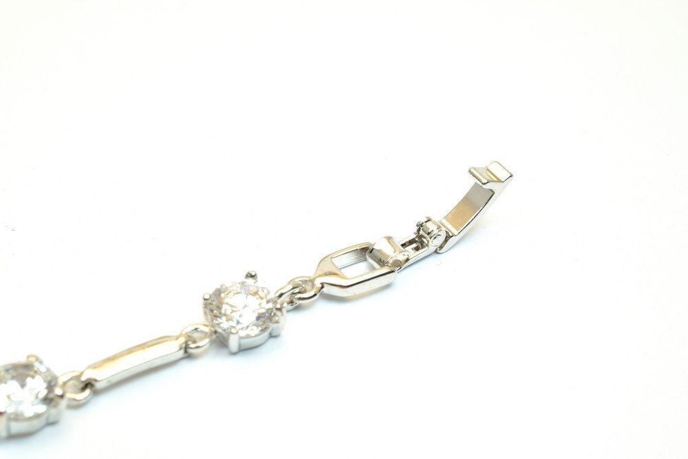 Tennis Bracelet White as Gold Filled* Rhodium Chain With Cubic Zirconia Size 7" Inches Bling Bling For Jewelry Making Item # BR23