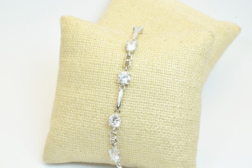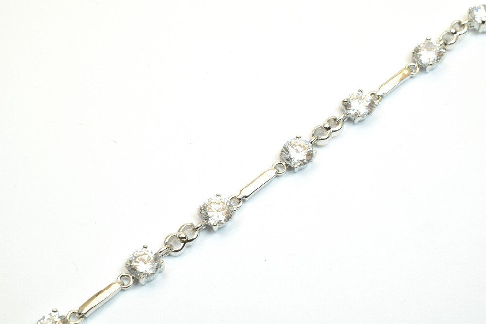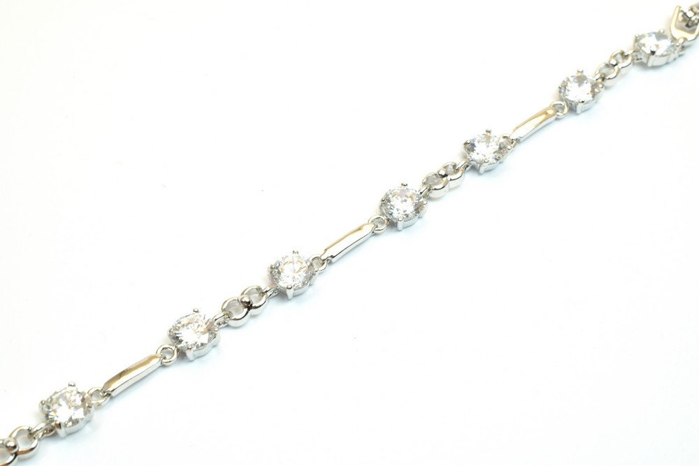 Tennis Bracelet Rhodium Plated Chain With Cubic Zirconia Size 7" Inches Jewelry Making Good for Holidays, Wedding Gift Item # BR23