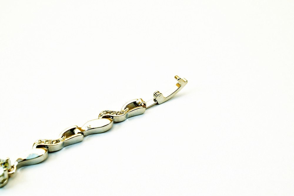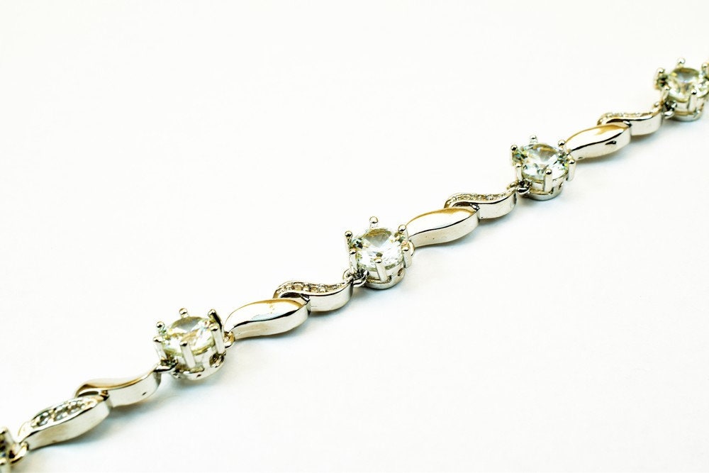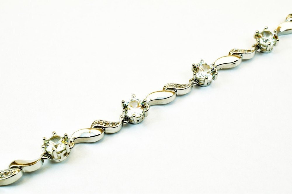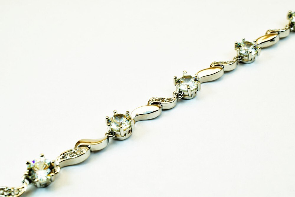Tennis Bracelet White as Gold Filled* Rhodium Chain With Cubic Zirconia Size 7" Inches Bling Bling For Jewelry Making Item # BR90
