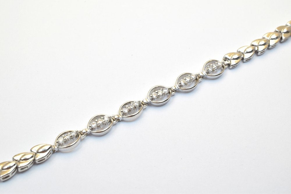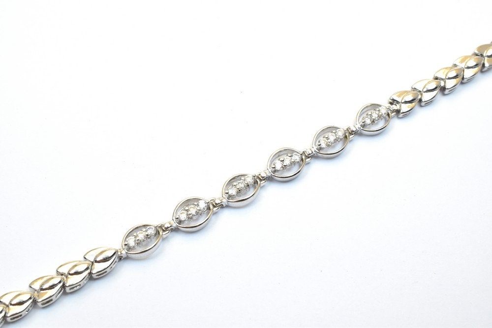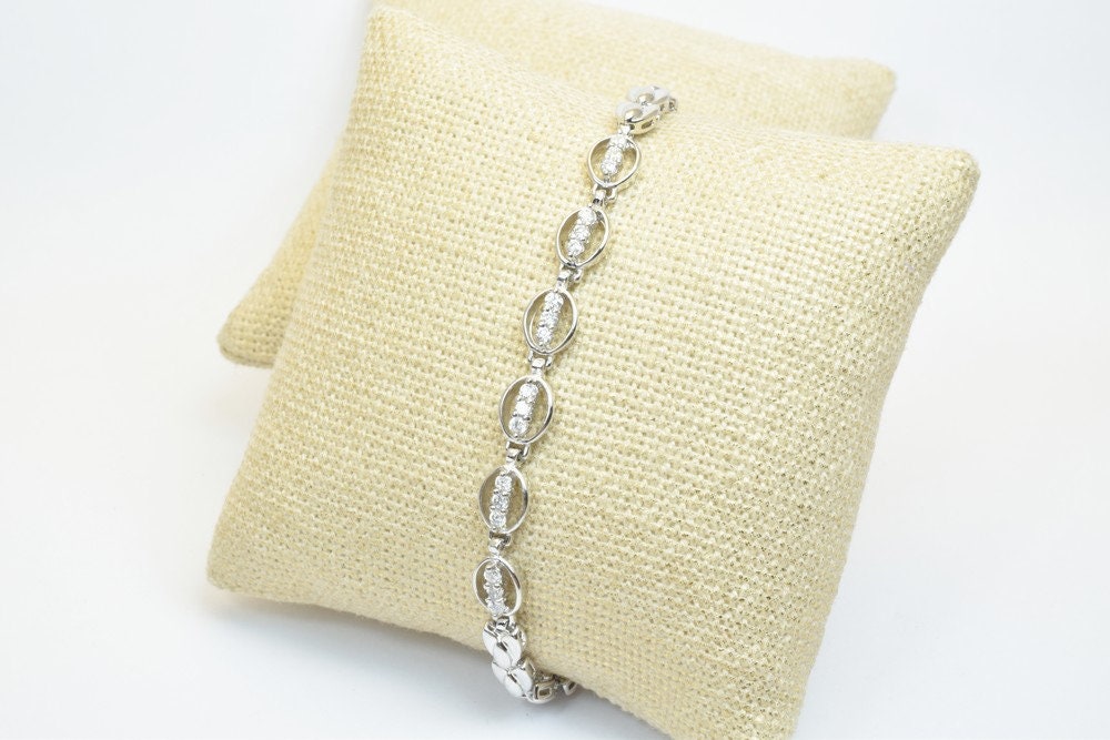 Tennis Bracelet White Gold Filled Rhodium Chain With Cubic Zirconia Size 6.75" Inches Bling Bling Jewelry Making Item