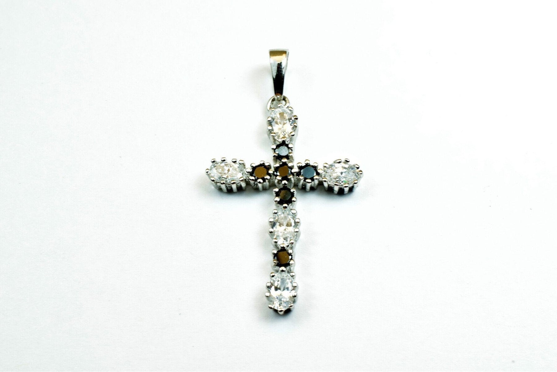 White Gold Filled Alternative Cross Pendant 39x20mm with Black & Clear CZ Stones