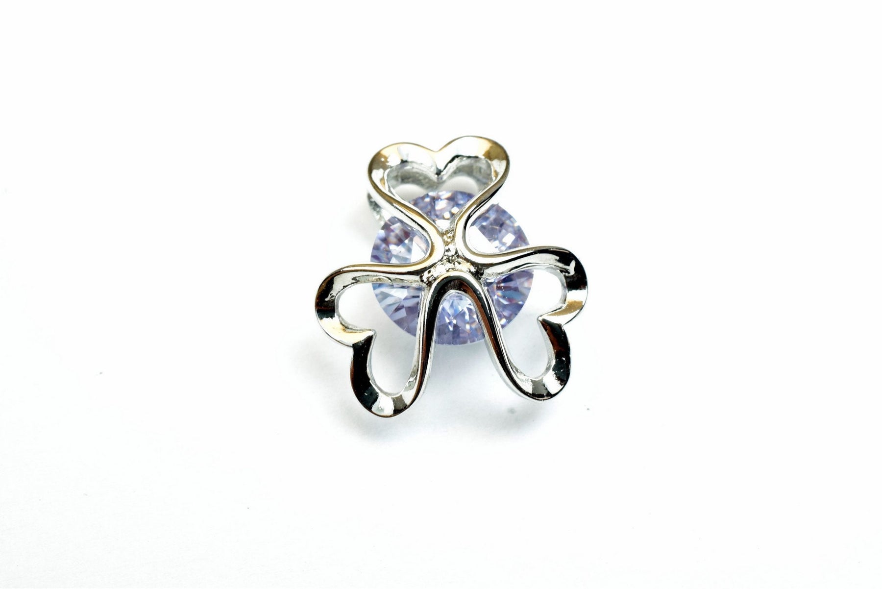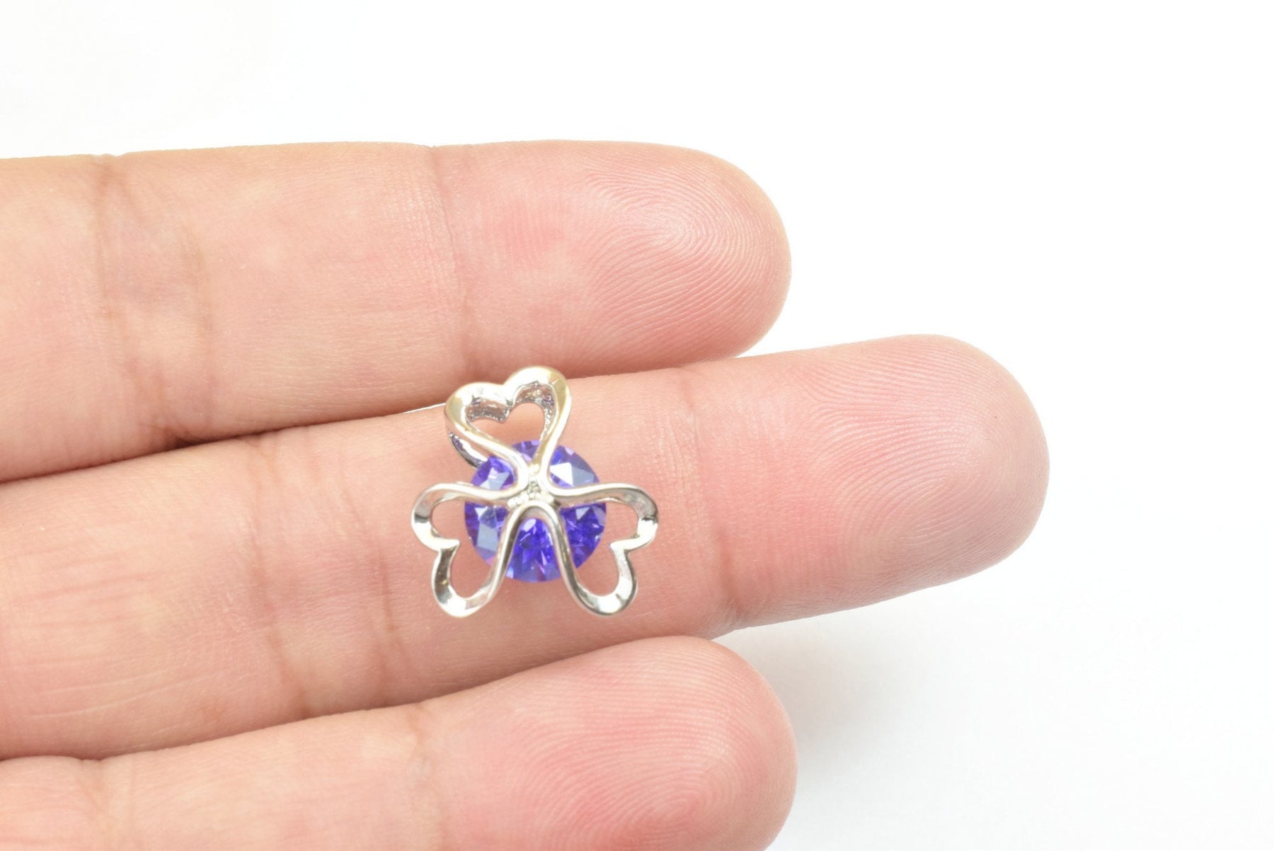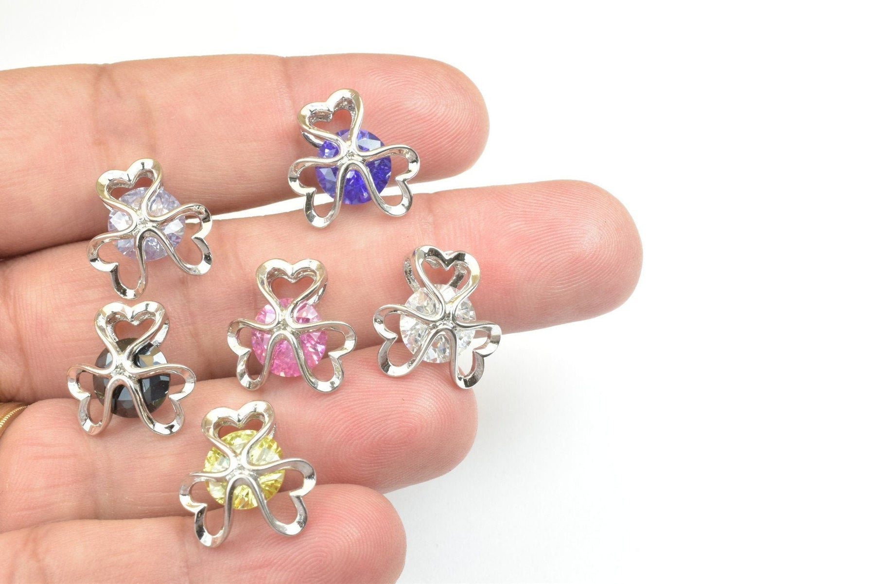 White Gold Filled Look, Heart Flower Charm Rhodium Pendant 15mm With CZ Cubic Zirconia jewelry making supplies