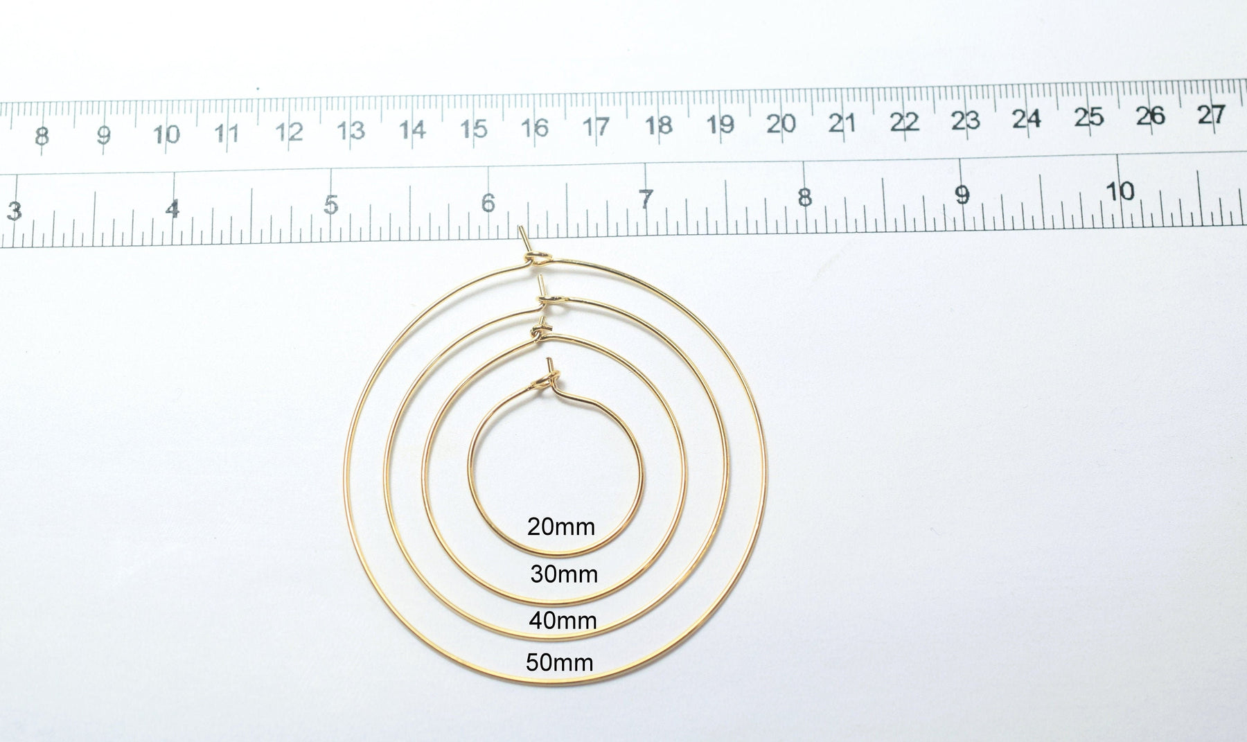 Wire Hoop hook Earring 18K Gold Filled Look, Size 20mm/30mm/40mm/50mm Thickness 0.8mm jewelry making supplies - detail ima...