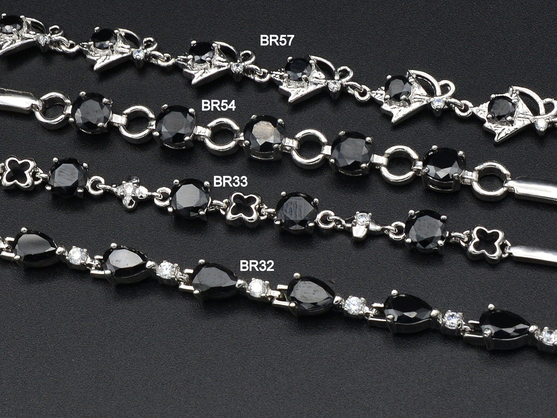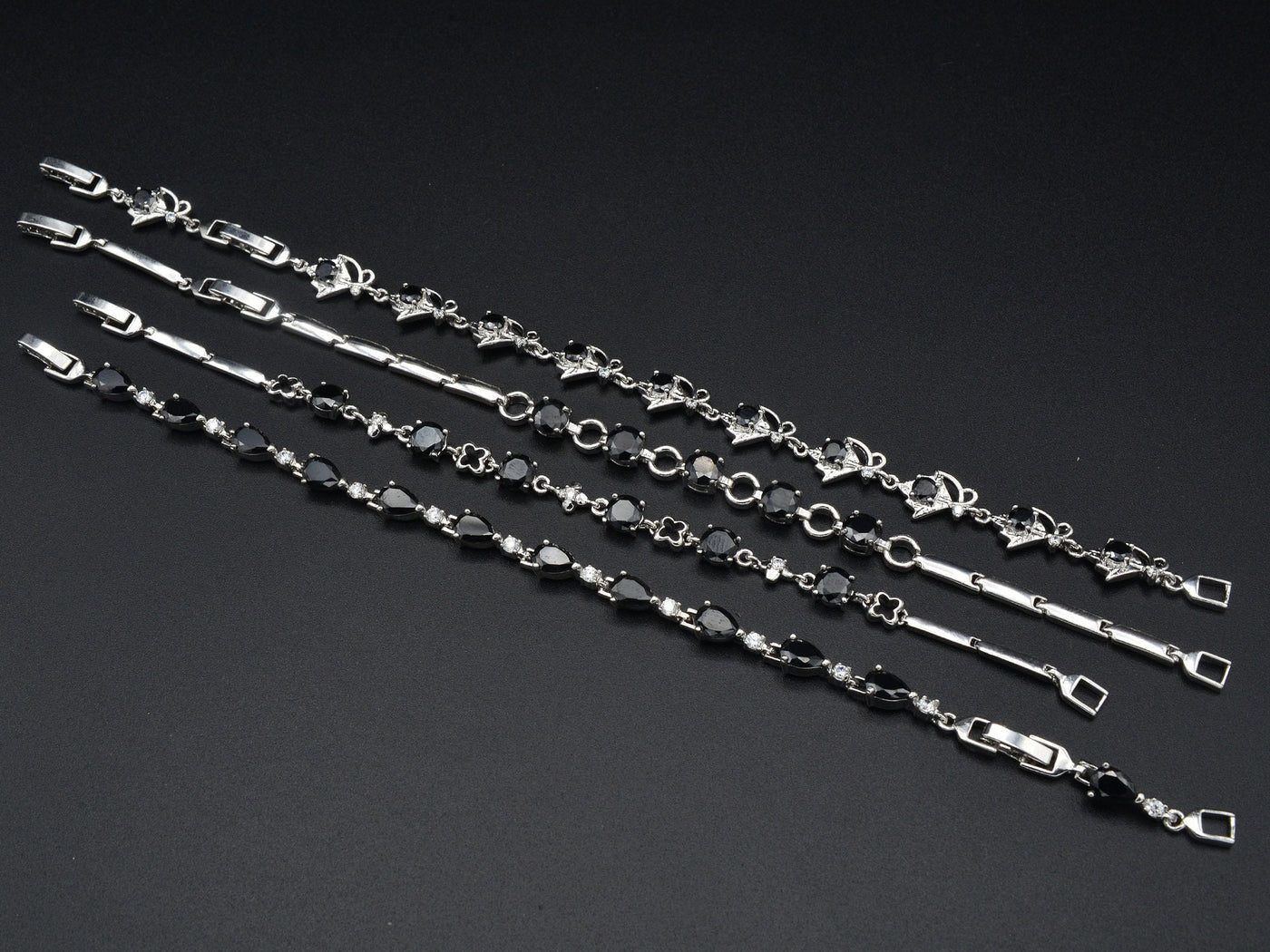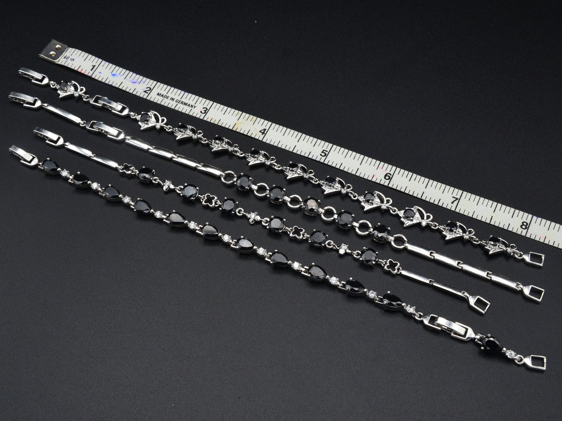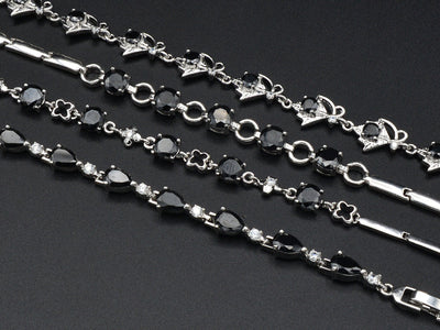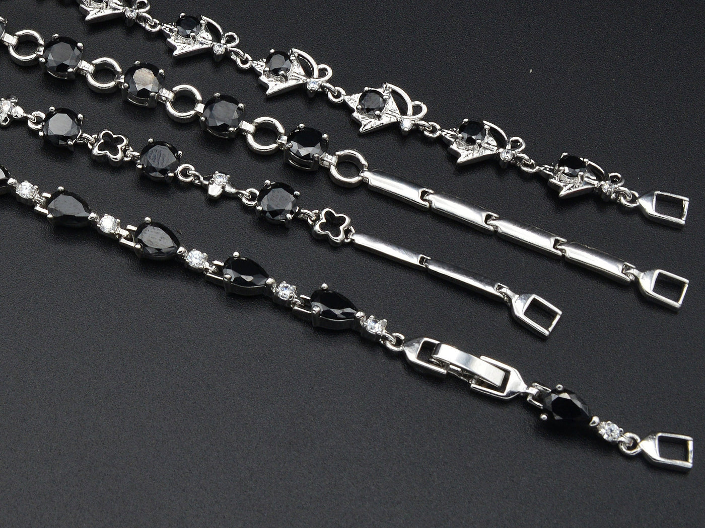 Women Silver Bracelet Rhodium Plated Chain With Black Cubic Zirconia bohemian Bling Bling Jewelry Making tarnish resistant