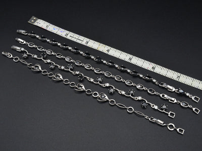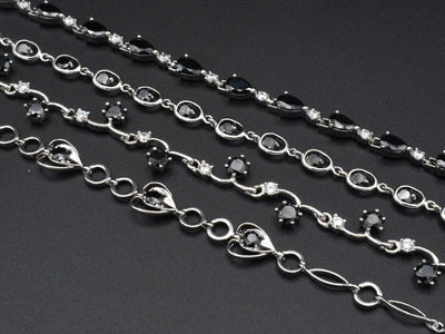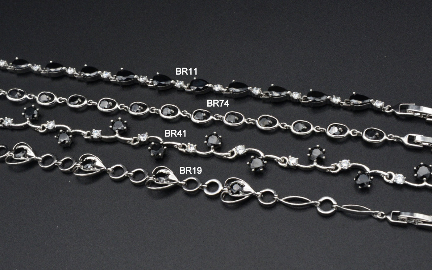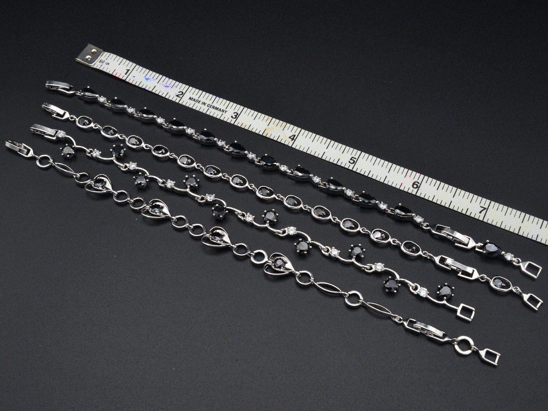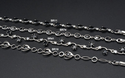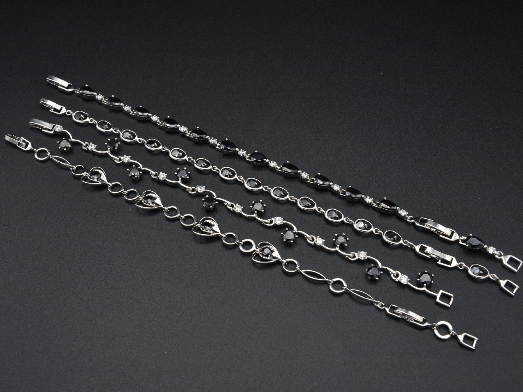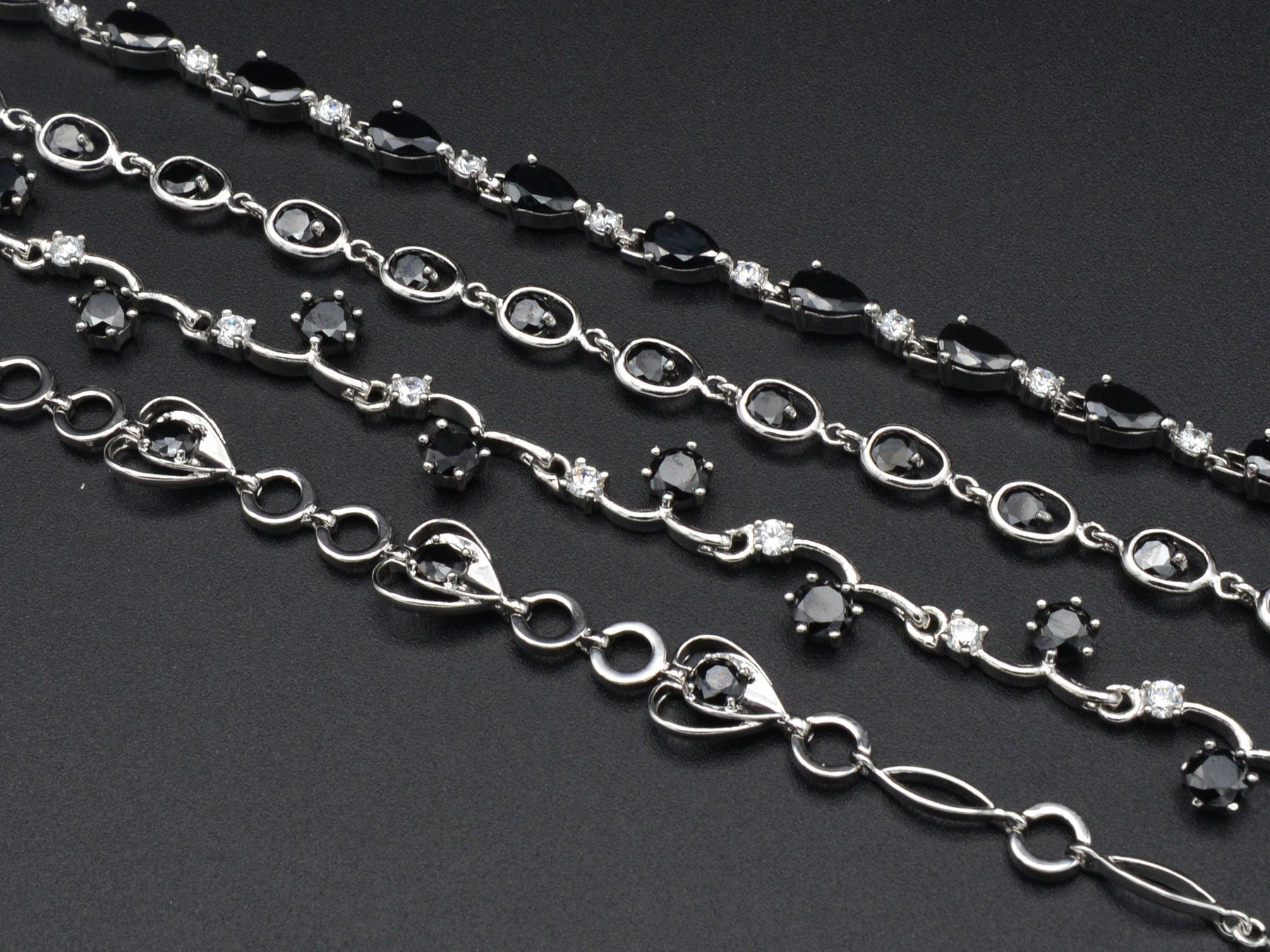 Women Silver Bracelet Rhodium Plated Chain With Black Cubic Zirconia bohemian Bling for Jewelry Making tarnish resistant