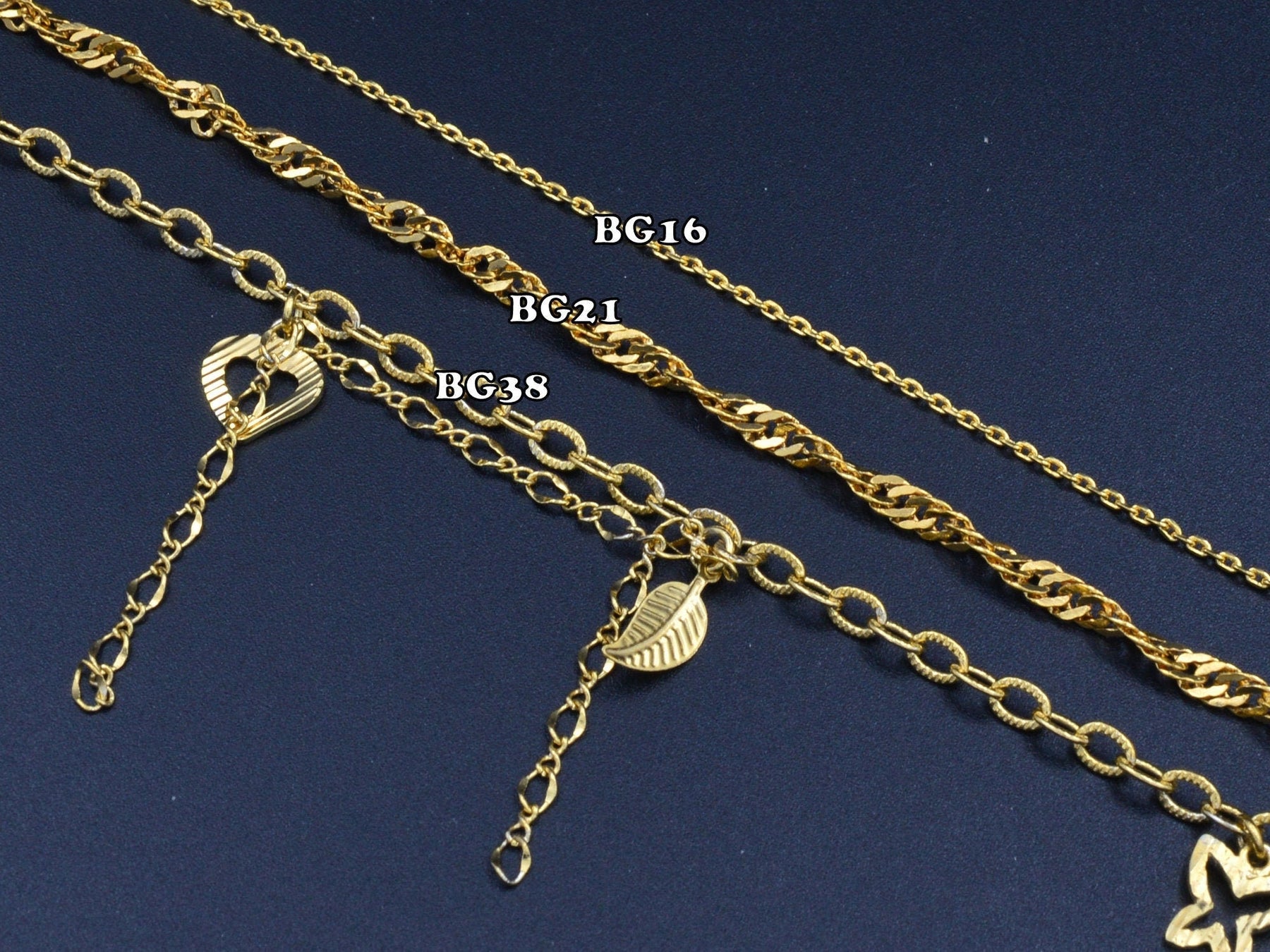 Women's Gold Bracelet/Anklet Cuban/Curb/Link/Singapore Chain With bohemian Bling for Jewelry Making tarnish resistant