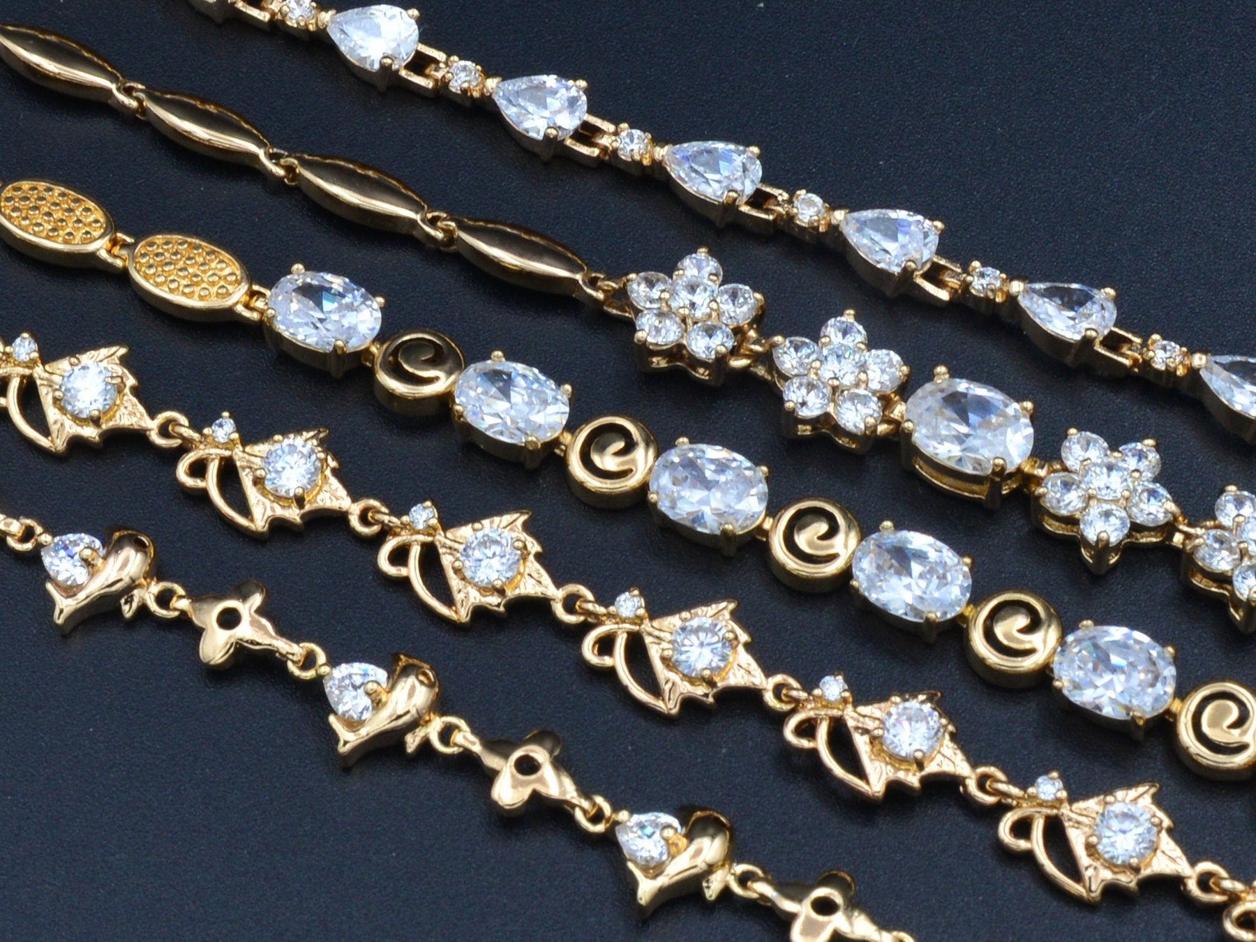 Women's Gold Bracelet Chain With Clear diamond Cubic Zirconia bohemian Bling for Jewelry Making tarnish resistant Women's Gift